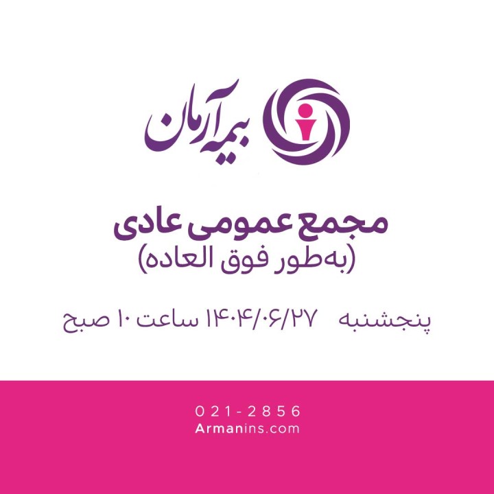 مجمع عمومی عادی به‌طور فوق‌العاده شرکت بیمه آرمان روز پنج‌شنبه ۲۷ شهریور ۱۴۰۴ با دستور انتخاب اعضای هیأت مدیره در ساختمان مرکزی این شرکت برگزار می‌شود.