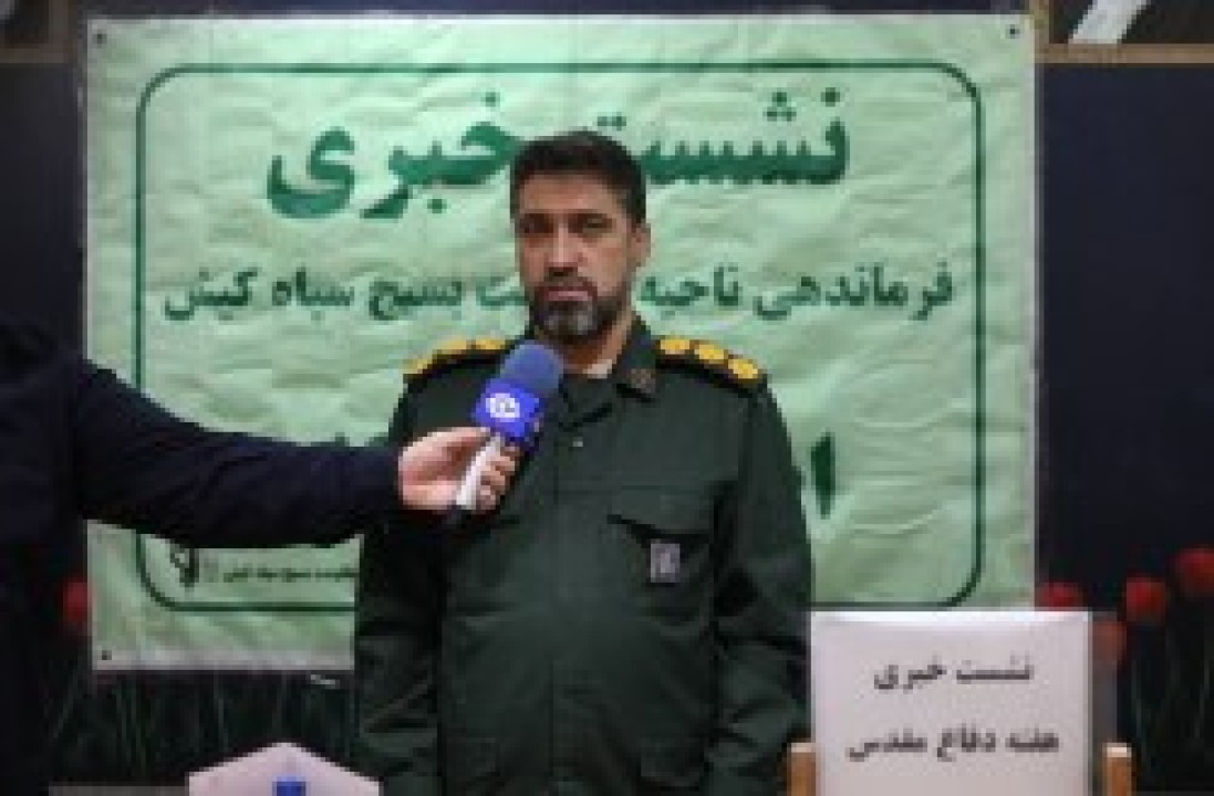 سرهنگ پاسدار محمد میرزاده، فرمانده ناحیه مقاومت بسیج سپاه کیش با بیان این که به مناسبت هفته دفاع مقدس، 60 برنامه متنوع در جزیره کیش برگزار می شود افزود: برنامهها با شعار محوری "ما فاتحان قُله ایم" اجرا میشوند و یگانهای نظامی مستقر در جزیره شامل پدافند هوایی ارتش، سپاه پاسداران، فرماندهی انتظامی ویژه، بسیج ، سازمان منطقه آزاد کیش و نهاد امامت جمعه در اجرای آن مشارکت دارند.