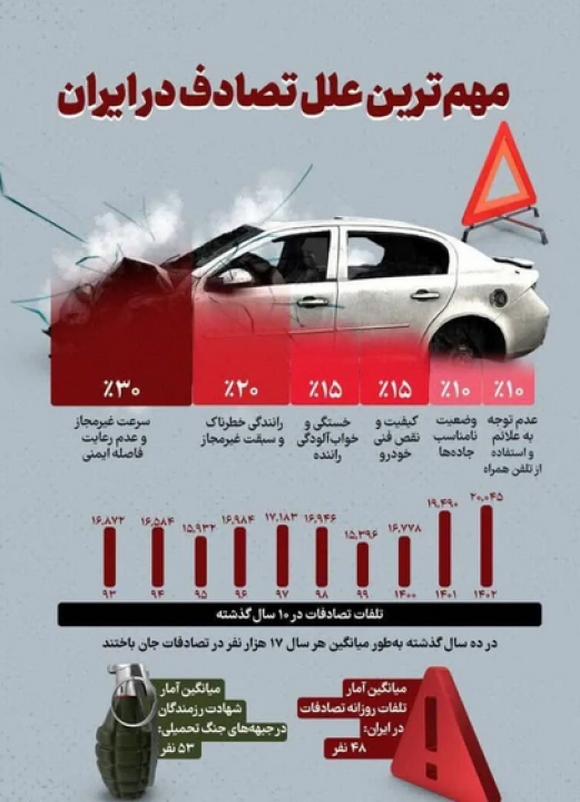 تصادفات جادهای در ایران یکی از چالشهای جدی اجتماعی و اقتصادی است که سالانه به مرگ هزاران نفر و آسیبهای فراوان منجر میشود. بر اساس آمار سازمان جهانی بهداشت (WHO)، ایران در زمره کشورهایی با نرخ بالای مرگومیر ناشی از تصادفات جادهای قرار دارد (حدود 20 تا 22 نفر به ازای هر 100 هزار نفر در سال). این یادداشت به بررسی علل این بحران و ارائه راهکارهای عملی برای کاهش آن میپردازد.